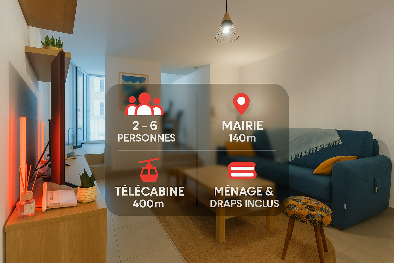 Niché au cœur de Cauterets, à deux pas de la télécabine du Lys et du centre, ce T2 bis rénové allie confort et tranquillité grâce à sa cour intérieure. Véritable cocon pour 4 à 6 personnes, il est équipé comme si vous y viviez, avec Wi-Fi fibre haut débit, pour un séjour sans contraintes. Posez la voiture et profitez à pied des pistes, thermes, balades, commerces et restaurants, le tout dans une ambiance douce et sereine.